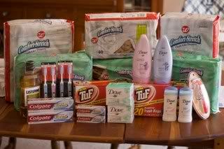 I had a 10 register reward from the huggies deal last week so I paid with that then I had the .73 tax left. Pretty good!!! .73 for 4 big packs of diapers. Reciept said I saved 31.96 plus with the toothpaste I saved 8.00 So for the week I saved about 39.96